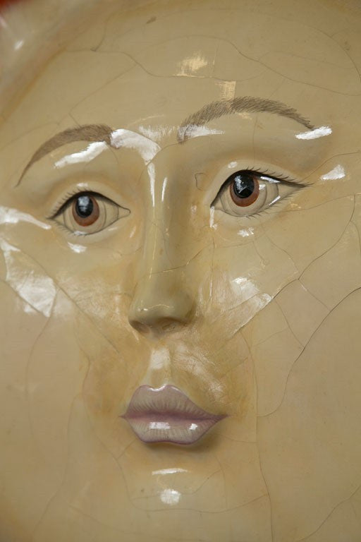 39" Diameter sun made out of paper mache with craquelure. The sun is painted. The artist is Mexican and exhibits in museums in the medium. Made in Mexico circa 1990. Condition: Excellent. 39" Dia
