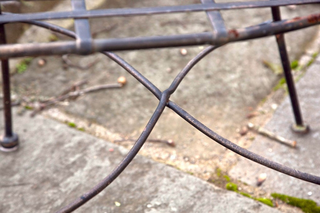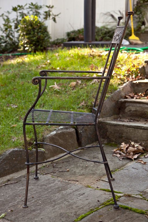 Set of Five Wrought Iron Armchairs with Overlay