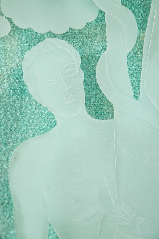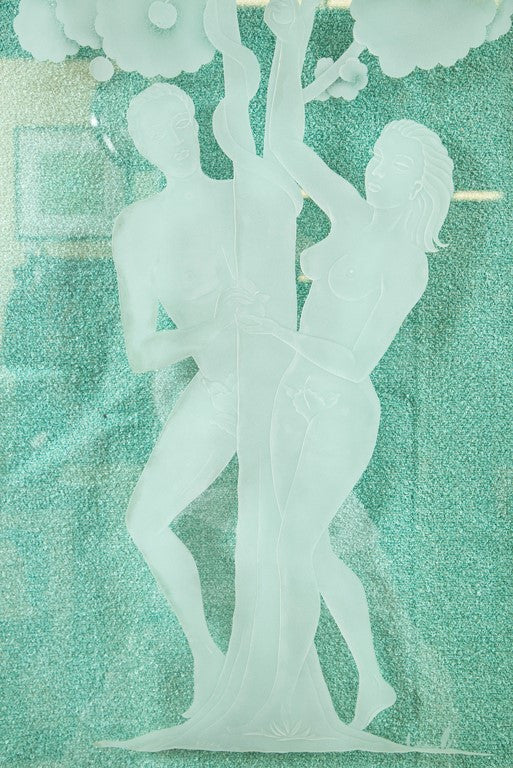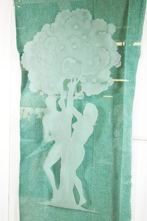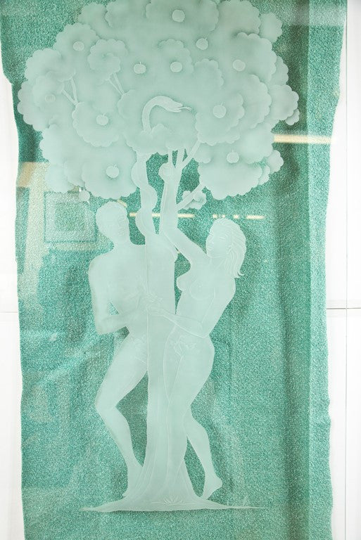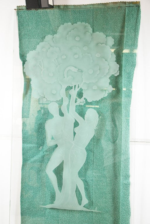 Figural Etched Glass Panel "Adam and Eve"