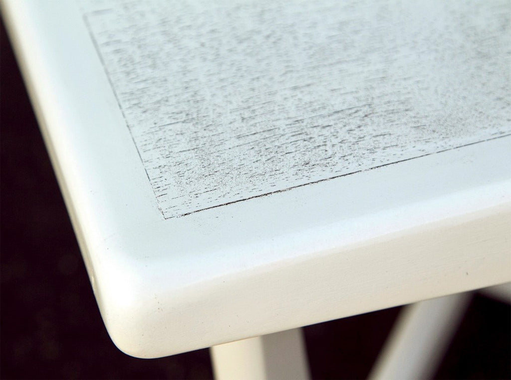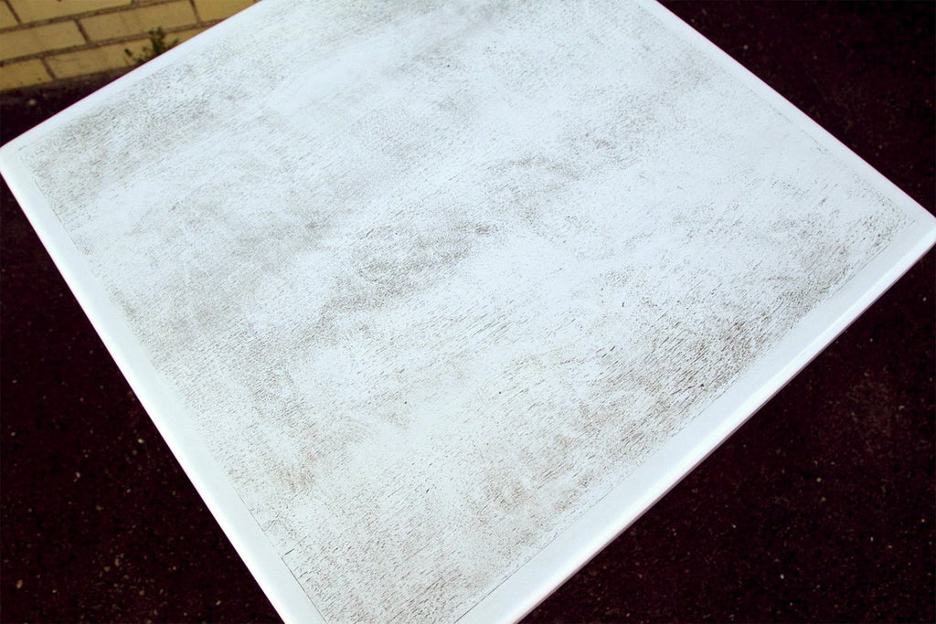 Square table with ceruse finish top and white paint base. Made in the United States circa 1970. Oak wood. Condition: Very Good. 19"H x 26"W x 26"D