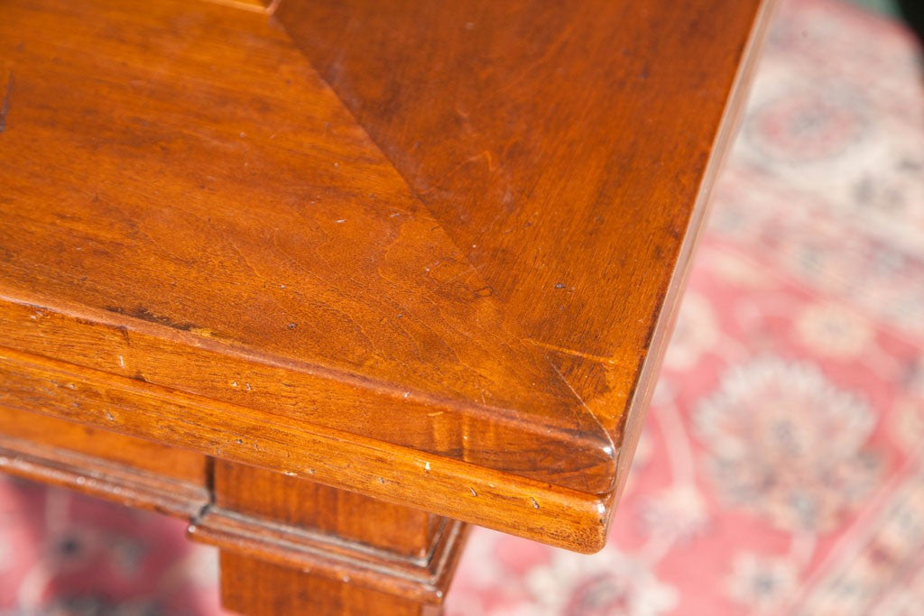 Late 20th century reproduction of an Italian-style walnut wood refractory dining table. Star design solid wood parquetry top. Two 24" refractory pull out leaves. Table also available in 66" and 78"