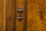 ROUGE COLOR MARBLE TOP BUFFET WITH MOLDED DOORS. BURL WALNUT AND SUNBURST DOORS. HAND CARVED FEET, PILASTERS AND BASE TRIM. INTERIOR TRAY DRAWERS. Made in the USA circa 1920 of walnut wood. Condition: Excellent. 37"H x 94"W x 25.5"D